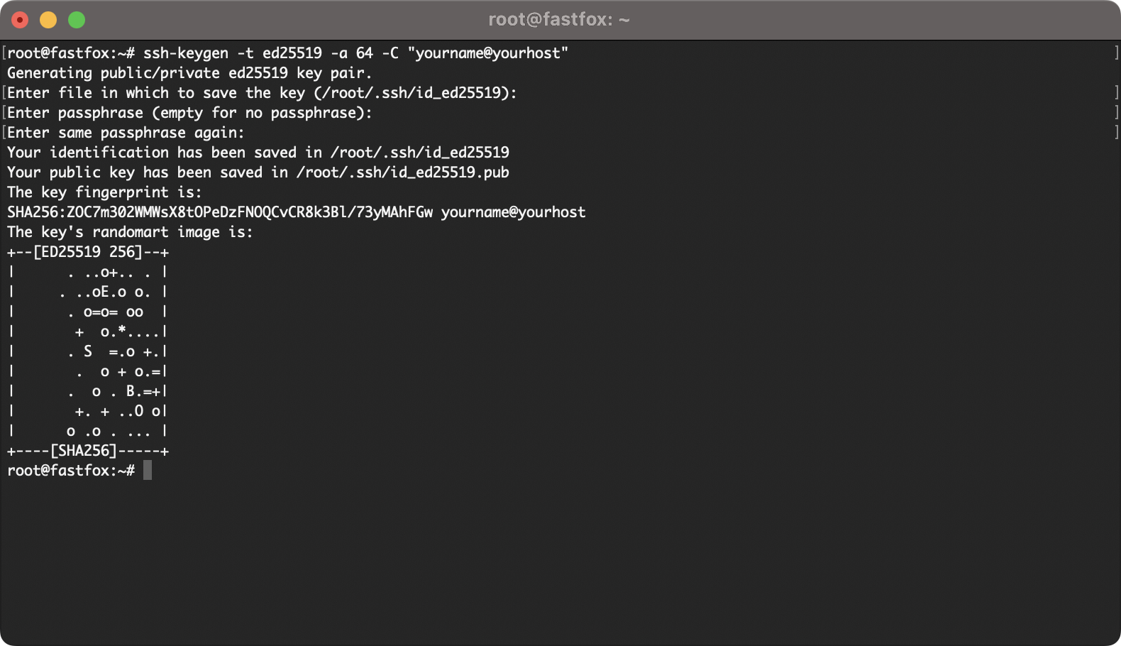 ssh-keygen -t ed25519 -a 64 -C "yourname@yourhost"